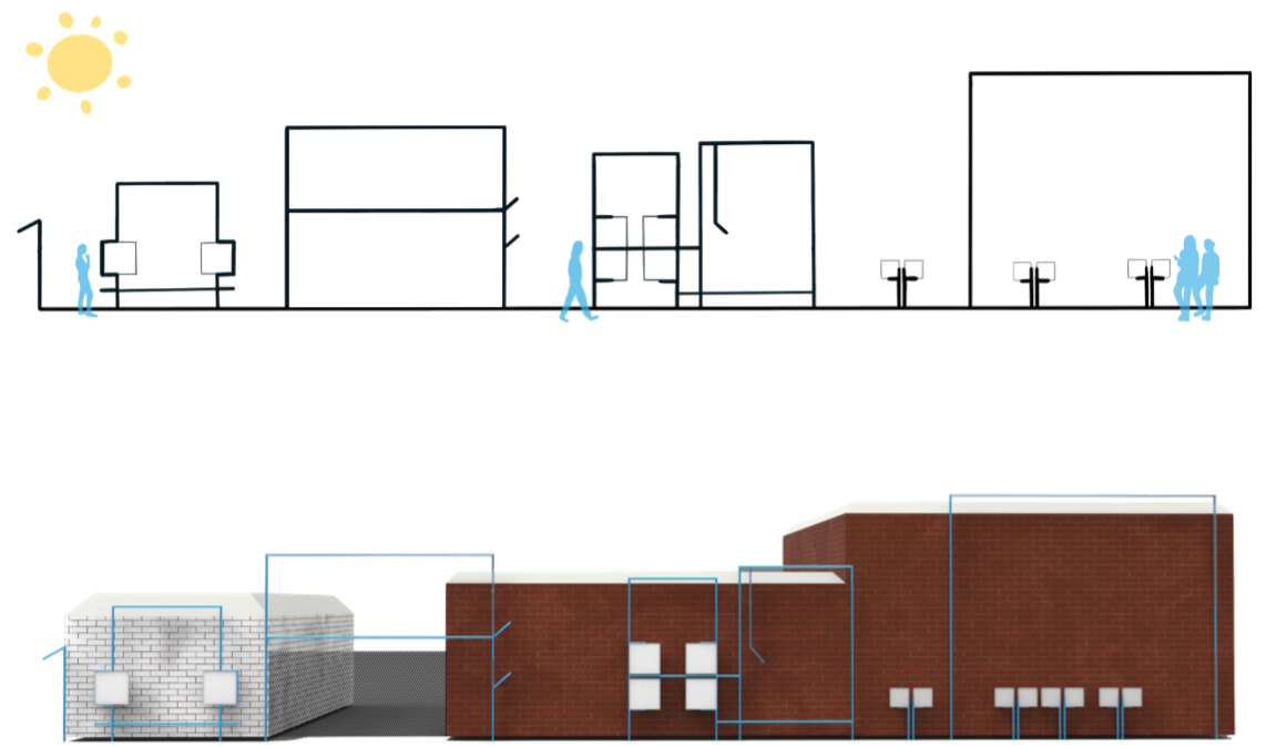This design introduces wave-activated misters for playful cooling, smart sensor lighting for safety and efficiency, and rain-protected art frames. Together, these features create a relaxing environment where people can enjoy both comfort and creativity day or night.