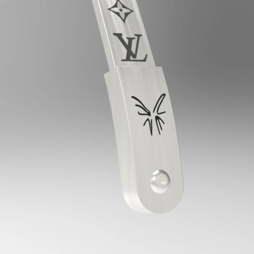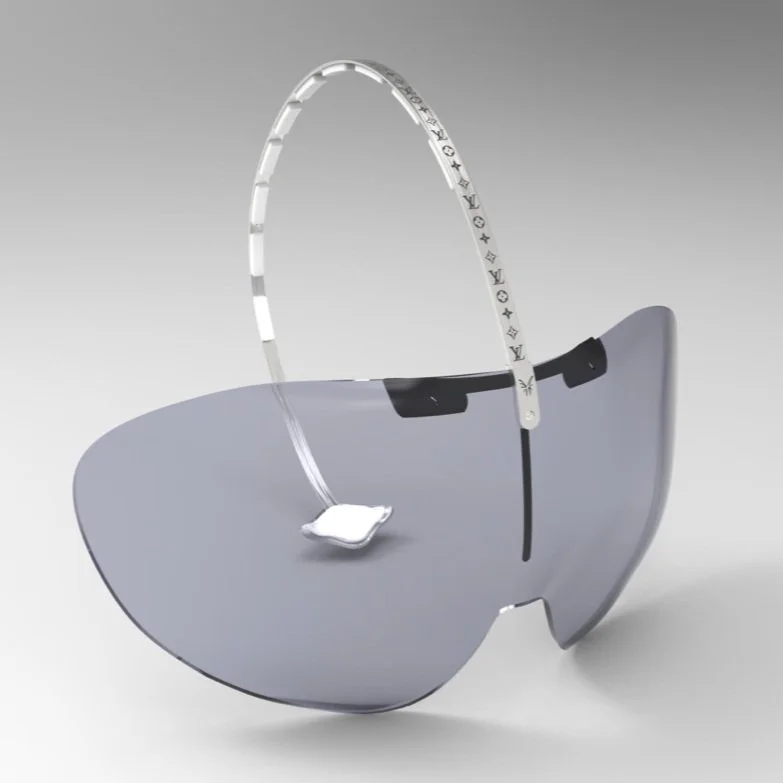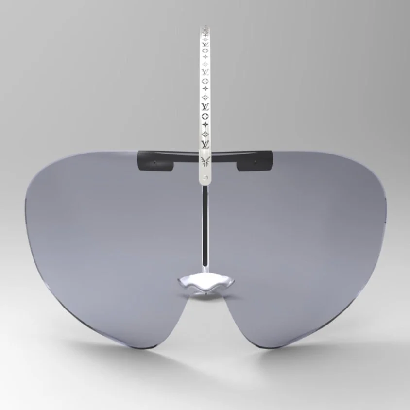 My logo was inspired by the shape of a butterfly a symbol of transformation, growth, freedom, and the fleeting beauty of design. The form also subtly echoes the silhouette of the LV Fiction Mask Sunglasses, which resemble butterfly wings around the eyes.